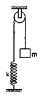 Consider the situation shown in figure (8-E8). Initially the spring is unstretched when the system is released from rest. Assuming no friction in the pulley, find the maximum elongation of the spring.