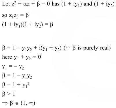 Question: Let $\alpha, \beta$ be real and $z$ be a complex number. If $z^{2}+\alpha z+\beta=0$ has two distinct roots on the line $\operatorname{Re} z=1$, then it is necessary that :-