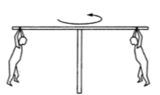 In a children's park a heavy rod is pivoted at the centre and is made to rotate about the pivot so that the rod always remains horizontal. Two kids hold the rod near the ends and thus rotate with the rod (figure 7-E2). Let the mass of each kid be $15 \mathrm{~kg}$, the distance between the points of the rod where the two kids hold it be $3.0 \mathrm{~m}$ and suppose that the rod rotates at the rate of 20 revolutions per minute. Find the force of friction exerted by the rod on one of the kids.
