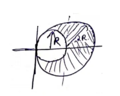 C.O.M of R disc $=(R, 0)$