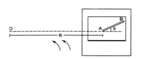Component of force $m R \omega^{2}$ along the line $A B$ will be responsible for motion of particle Force $=m R \omega^{2} \cos \theta$