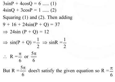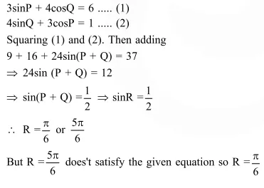 In a $\triangle P Q R$, if $3 \sin P+4 \cos Q=6$ and $4 \sin Q+3 \cos P=1$, then the angle $R$ is equal to :
