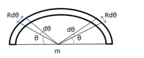 Consider two small elements at an angle $\theta$ from horizontal length of the element $=\mathrm{Rd} \theta$