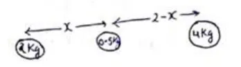 Let mass $0.5 \mathrm{~kg}$ is placed at distance $x$ from $2 \mathrm{~kg}$ between both masses. Since, particle is in equilibrium.