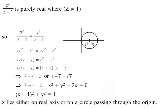 Question: If $\mathrm{z} \neq 1$ and $\frac{\mathrm{z}^{2}}{\mathrm{z}-1}$ is real, then the point represented by the complex number $\mathrm{z}$ lies :