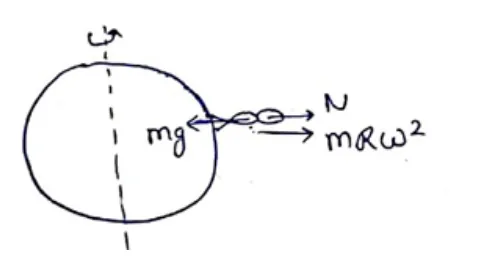 At equator, normal contact force $\mathrm{N}+\mathrm{mR} \omega^{2}=\mathrm{mg}$