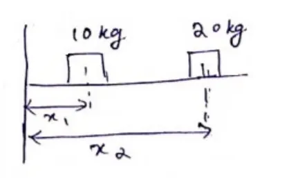 $\therefore x_{C O M}=\frac{10 x_{1}+20 x_{2}}{30}$