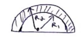 C.O.M of shaded region $=\frac{\int r \cdot d m_{R_{2}}-\int r . d m_{R_{1}}}{M_{R_{2}}-M_{R_{1}}}$
