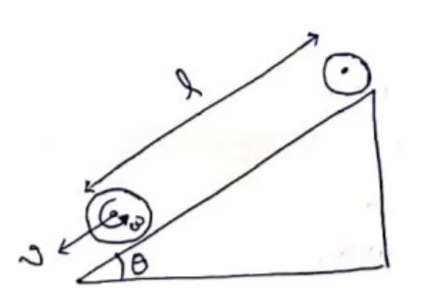 A sphere starts rolling down an incline of inclination $\theta$. Find the speed of its centre when it has covered a distance $\mathrm{I}$.