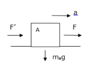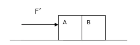 Two blocks $\mathrm{A}$ and $\mathrm{B}$ of mass $\mathrm{mA}$ and $\mathrm{mB}$ respectively are kept in contact on a frictionless table. The experimenter pushes the block $A$ from behind so that the blocks accelerate. If the block $A$ exerts a force $F$ on the block $B$, what is the force exerted by the experimenter on $A$ ?
