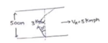 When $\mathrm{V}_{\text {river }}>\mathrm{v}_{\text {manand }}$ for minimum drift $\sin \theta=\frac{\mathrm{V}_{\text {Man }}}{\mathrm{V}_{\text {river }}}$