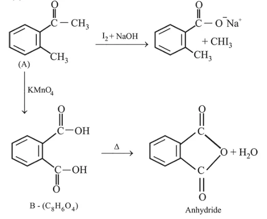 Compound $\mathrm{A}\left(\mathrm{C}_{9} \mathrm{H}_{10} \mathrm{O}\right)$ shows positive iodoform test. Oxidation of $\mathrm{A}$ with $\mathrm{KMnO}_{4} / \mathrm{KOH}$ gives acid $\mathrm{B}\left(\mathrm{C}_{8} \mathrm{H}_{6} \mathrm{O}_{4}\right)$. Anhydride of $\mathrm{B}$ is used for the preparation of phenolphthalein. Compound $\mathrm{A}$ is :