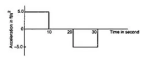 The acceleration of a cart started at $t=0$, varies with time as shown in the given figure. Find the distance travelled in 30 seconds and draw the position-time graph.