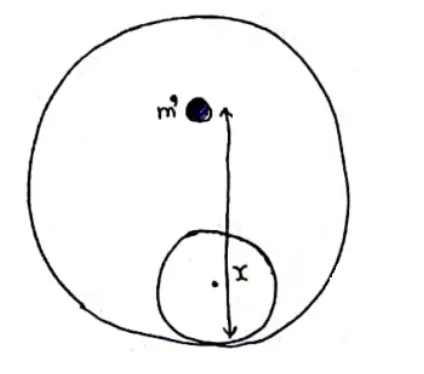 Force by shell= $m^{\prime}\left(\frac{G M}{(x-R)^{2}}\right)$