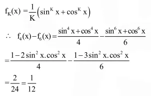 Let $f_{K}(x)=\frac{1}{k}\left(\sin ^{k} x+\cos ^{k} x\right)$ where $x \in R$ and $k \geq 1 .$ Then $f_{4}(x)-f_{6}(x)$ equals :