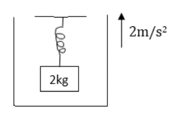 Suppose the ceiling in the previous problem is that of an elevator which is going up with an acceleration of $2.0 \mathrm{~m} / \mathrm{s}^{2}$. Find the elongations.