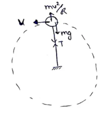 $\mathrm{T}+\mathrm{mg}=\frac{m v^{2}}{R}$