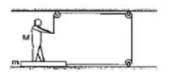 The friction coefficient between the board and the floor shown in figure is IA. Find the maximum force that the man can exert on the rope so that the board does not slip on the floor.