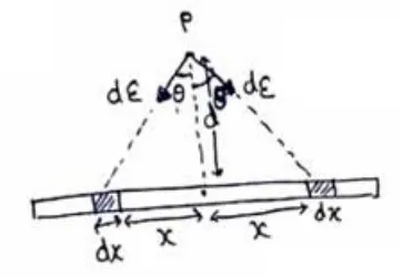 $d E=\frac{G d m}{d^{2}+x^{2}}$