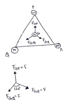$F=F_{G P}=F_{G Q}=F_{G R}=\frac{3 G m^{2}}{a^{2}}$