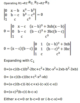 $\left|\begin{array}{lll}1 & x & x^{3} \\ 1 & b & b^{3} \\ 1 & c & x^{3}\end{array}\right|=0$