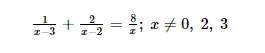 $\Rightarrow \frac{(x-2)+2(x-3)}{(x-3)(x-2)}=\frac{8}{x}$