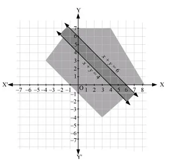 Solve the following system of inequalities graphically: x + y ≤ 6, x + y ≥ 4