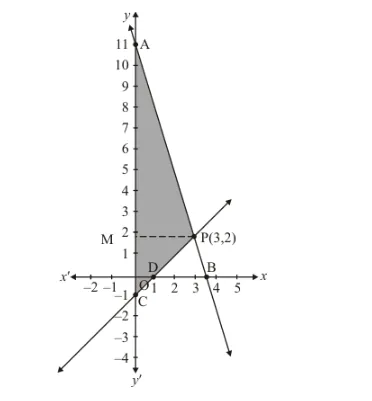 The area enclosed by the lines represented by the given equations and the y−axis is shaded region in the figure