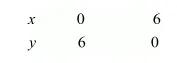 Draw the graph by plotting the two points $A(0,6)$ and $B(6,0)$ from table.