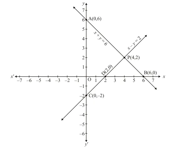 $x-y=2 \quad \ldots \ldots \ldots(i i)$