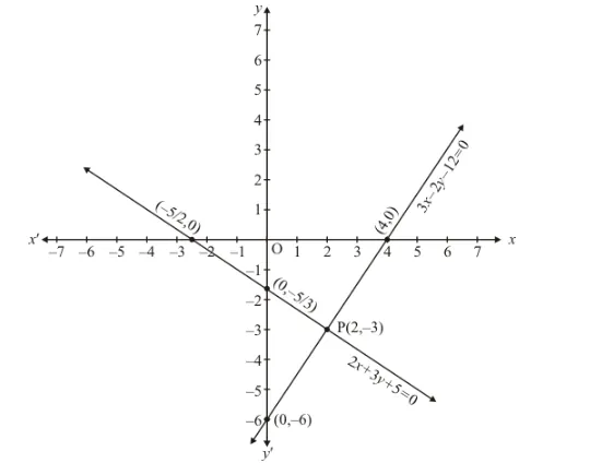 Putting $y=0$ in equation $(i i)$, we get:$\Rightarrow 3 x-2 \times 0=12$