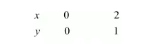 Draw the graph by plotting the two points $O(0,0)$ and $D(2,1)$ from table.