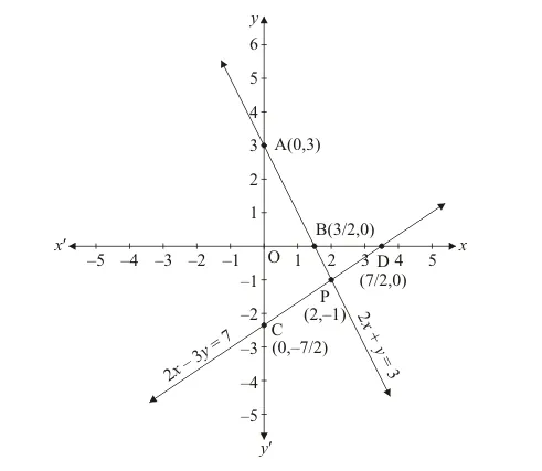 $\Rightarrow 2 x-3 y=7$ $\ldots . .(ii)$