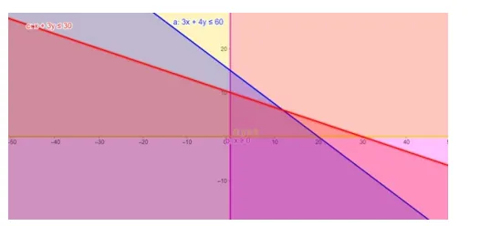 Solve the given inequalities $3 x+4 y \leq 60, x+3 y \leq 30, x \geq 0, y \geq 0$ graphically in two - dimensional plane.