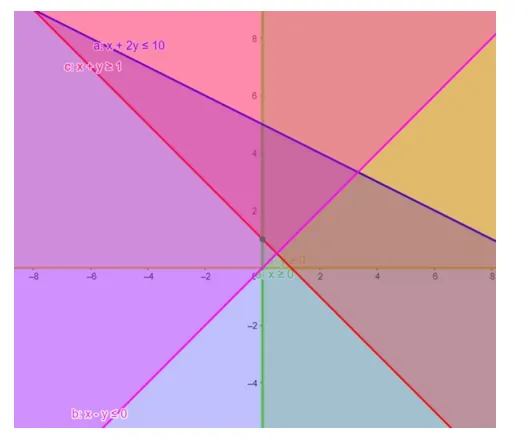 Inequality (1) represents the region below line $x+2 y=10$ (including the line $x+2 y=10$ ).