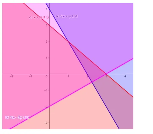 Inequality (2) represents the region below line $x+y=3$ (including the line $x+y=3$ ).