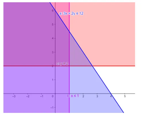 Solve the given inequalities $3 x+2 y \leq 12, x \leq 1, y \geq 2$ graphically in two - dimensional plane.