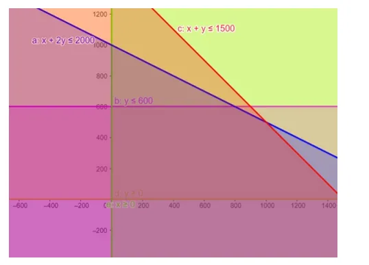$x+y \leq 1500 \ldots \ldots$ (2)