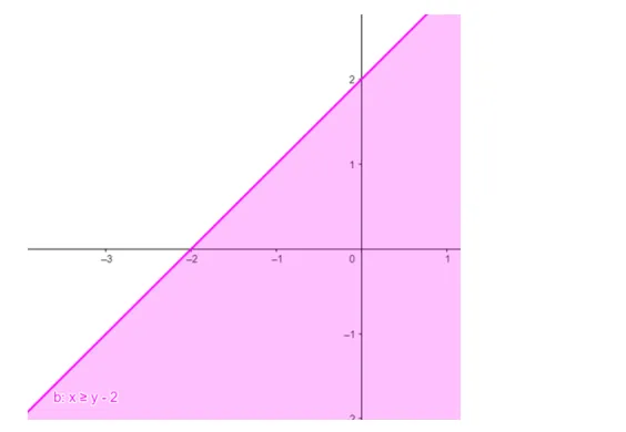 Solve the given inequality $x \geq y-2$ graphically in two - dimensional plane.