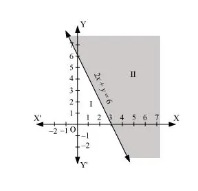 Therefore, half plane I is not the solution region of the given inequality. Also, it is evident that any point on the line satisfies the given inequality.