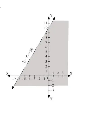 Solve the given inequality graphically in two-dimensional plane: 3y – 5x < 30