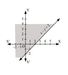 Solve the given inequality graphically in two-dimensional plane: $x-y \leq 2$