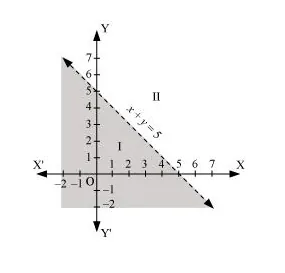 Therefore, half plane II is not the solution region of the given inequality. Also, it is evident that any point on the line does not satisfy the given strict inequality.