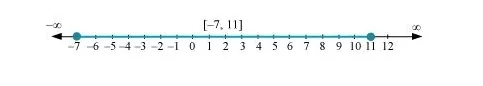 From (1) and (2), it can be concluded that the solution set for the given system of inequalities is [–7, 11]. The solution of the given system of inequalities can be represented on number line as