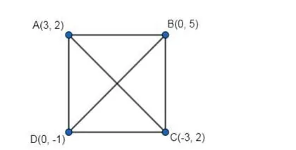 Given: The points are $A(3,2), B(0,5), C(-3,2)$ and $D(0,-1)$.
