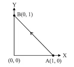 Consider a force $\overrightarrow{\mathrm{F}}=-x \hat{i}+y \hat{j}$. The work done by this force in moving a particle from point $A(1,0)$ to $B(0,1)$ along the line segment is: (all quantities are in SI units)