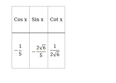 To find: cos x and cot x