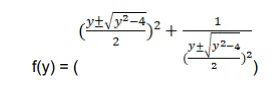$\mathrm{X}=\frac{\frac{y \pm \sqrt{y^{2}-4}}{2}}{2}$