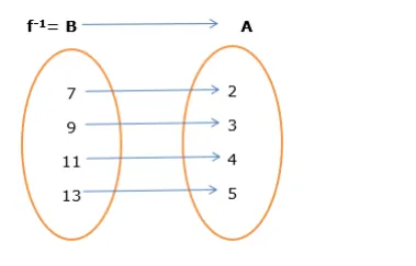 So $f^{-1}=\{(7,2),(9,3),(11,4),(13,5)\}$