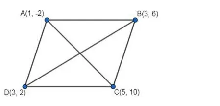 Show that A(1, -2), B(3, 6), C(5, 10) and D(3, 2) are the vertices of a parallelogram.